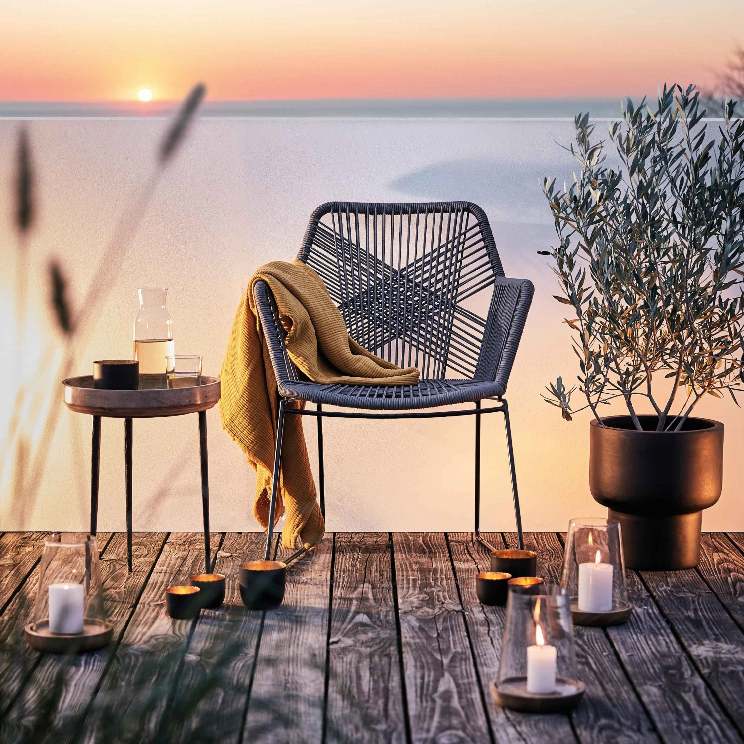 Ganz schön raffiniert: Beim modernen Cordée Gartensessel läuft es bei Sitzfläche, Rückenlehne und Armlehnen kreuz und quer, so dass ein außergewöhnliches Design entsteht. Diese besondere Bespannung macht den Sessel erstens zu einem echten Relaxsessel mit viel Sitzkomfort und zweitens zu einem attraktiven Hingucker, der als Einzelstück alle Blicke auf sich zieht und gruppiert am Esstisch für ein stylishes Ambiente sorgt. Dank wetterfester Ausführung funktioniert der Sessel dabei indoor wie outdoor