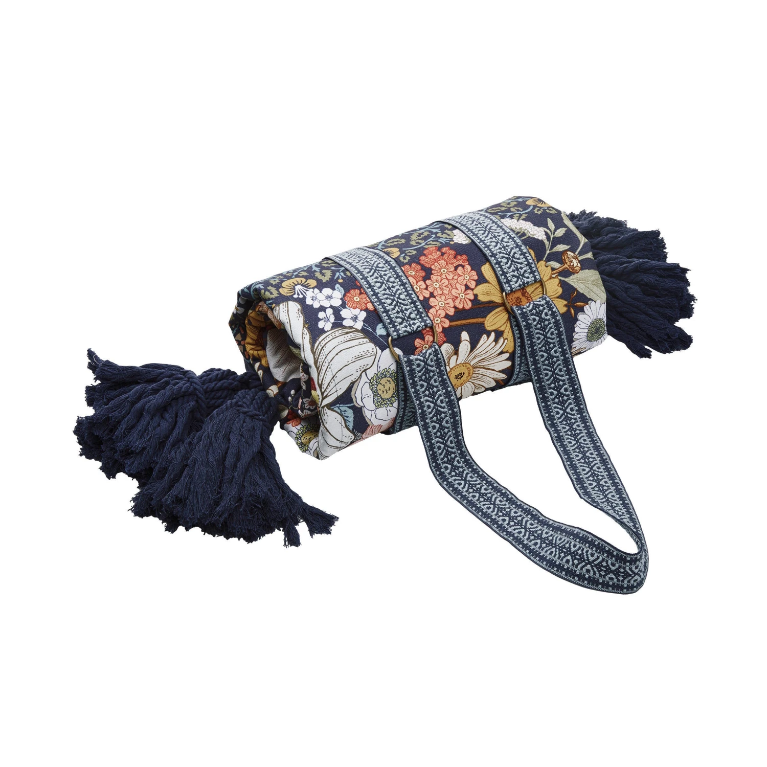 Auch wenn Sie auf der grünen Wiese oder am Strand sitzen, picknicken Sie inmitten von hübschen Blumen mit der Between Flowers Picknickdecke. Diese dekorative Picknickdecke im angesagten Boho-Stil mit Troddeln bringt praktischerweise einen optisch perfekt harmonierenden Tragegurt mit, so dass Sie sich die Decke einfach umhängen können. Aus reiner Baumwolle, Rückseite uni, in Creme und Blau erhältlich.
